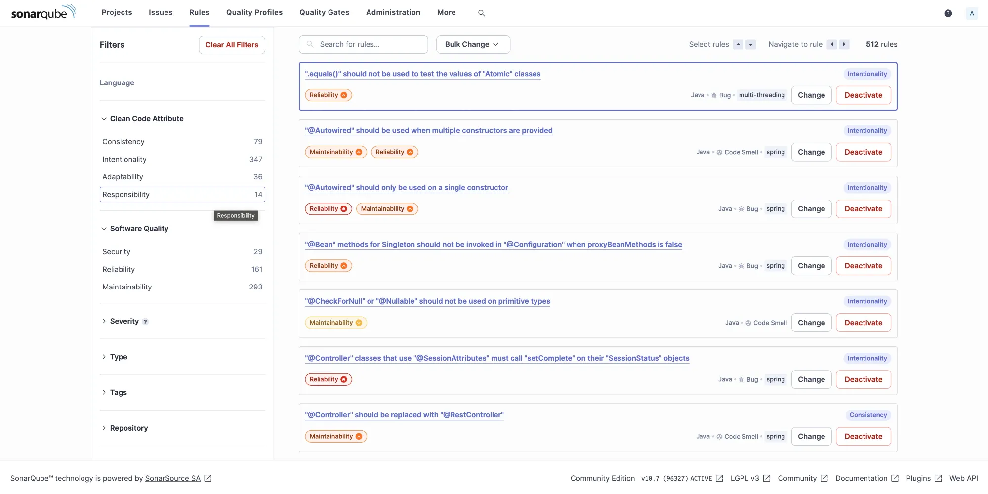 SonarQube / Sonarlint는 아래와 같은 기준을 가지고 정적 분석을 진행한다.