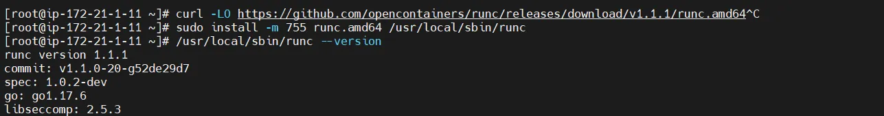 sudo install -m 755 runc.amd64 /usr/local/sbin/runc