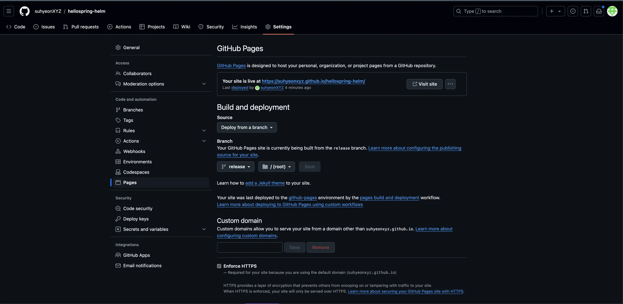 - helm repo를 호스팅하려면 git repository를 Pages로 호스팅한다.