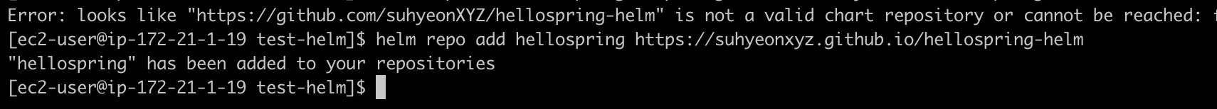 helm repo add hellospring https://github.com/suhyeonXYZ/hellospring-helm