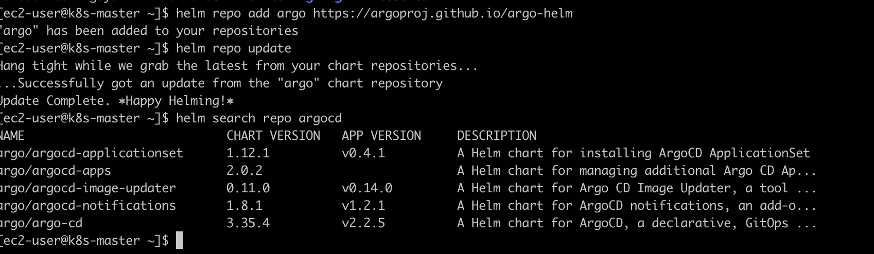 helm repo update정상적으로 helm repo가 등록된 것을 알 수 있다.