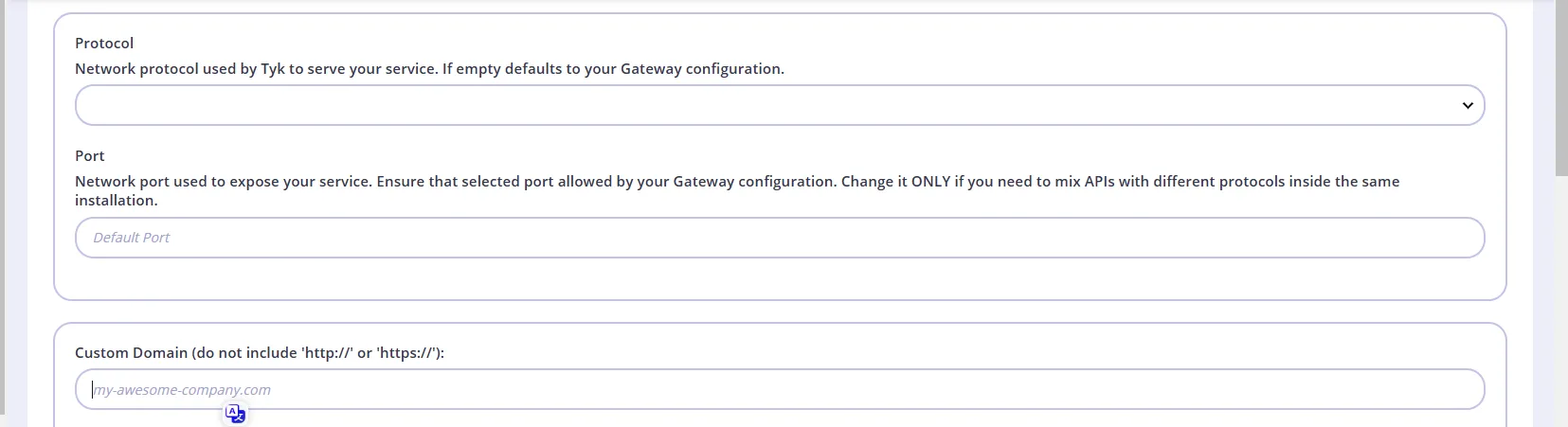 - custom domain에는 tyk gateway로 접근할 수 있는 url을 입력한다.
