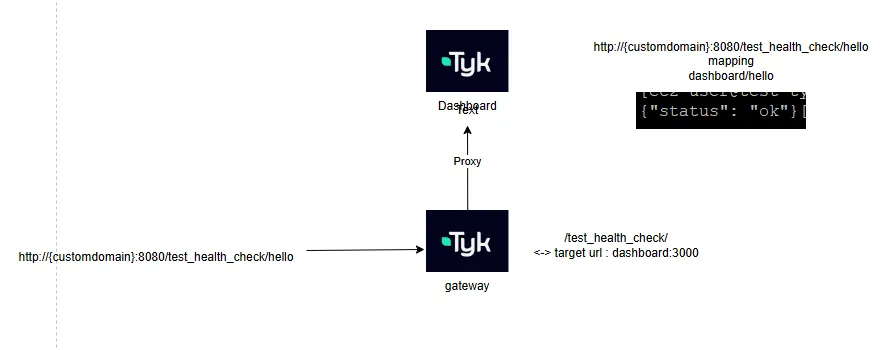 - 테스트한 내용은 아래와 같이 tyk gateway를 통해 target : dashboard의 healthcheck를 진행하였다.