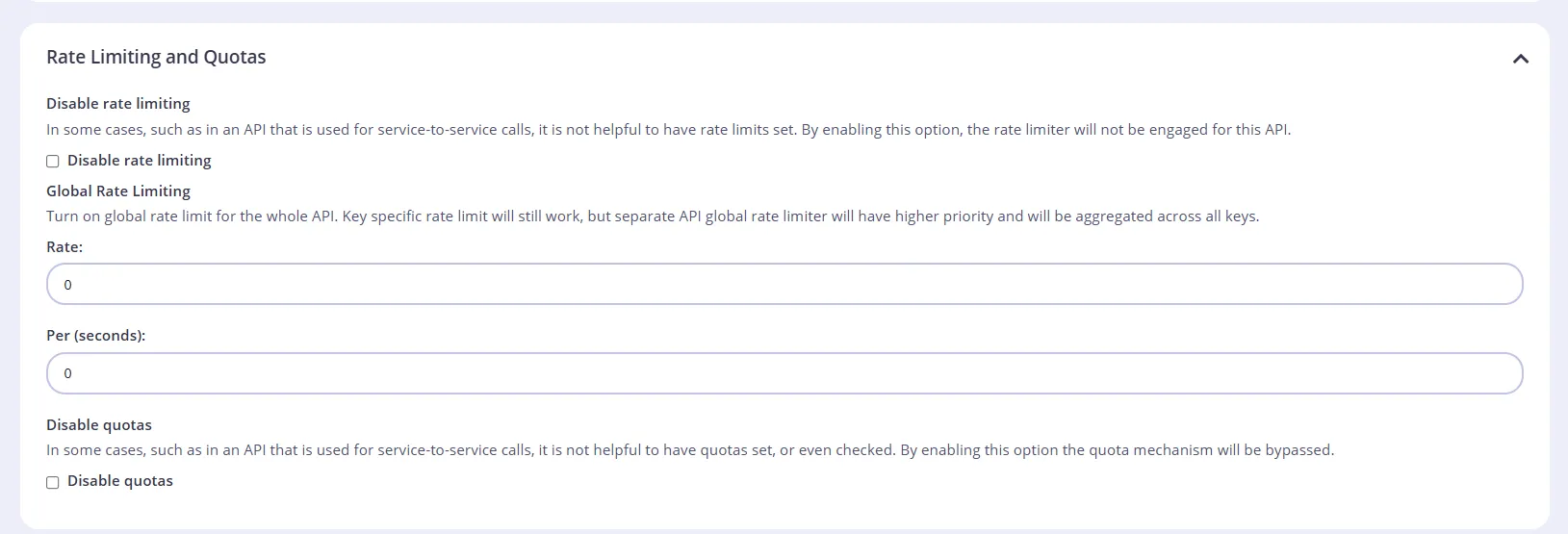 공통 기능으로, backend단을 보호하기 위해 과도한 트래픽 발생 시 apigateway에서 조절해주는 설정이 있다. 이것은 무제한으로 두고 넘어간다.