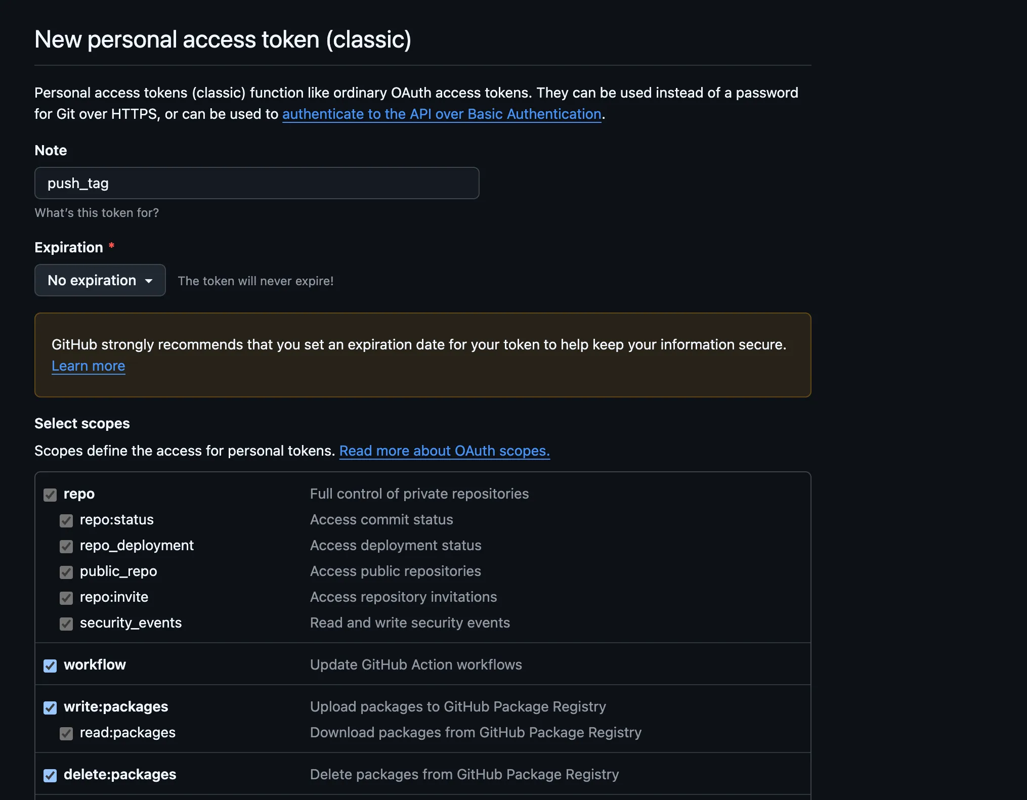 위에 스크립트를 보면, 버전 관리를 위해 두가지 docker image tag를 생성하여 push하는 것을 볼 수 있다. git 의 tag 기능을 사용하여 버전 별 tag를 붙이고, 버전 관리를 진행할 수 있다.