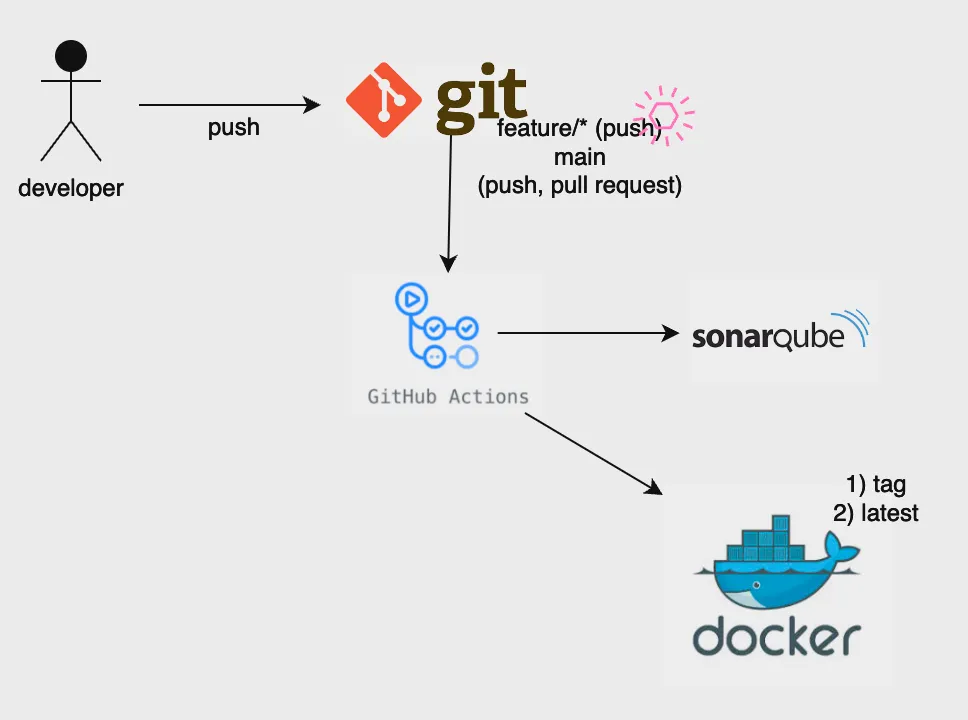 💡github action을 통해서 정적 분석을 진행하고, docker build를 진행한다.