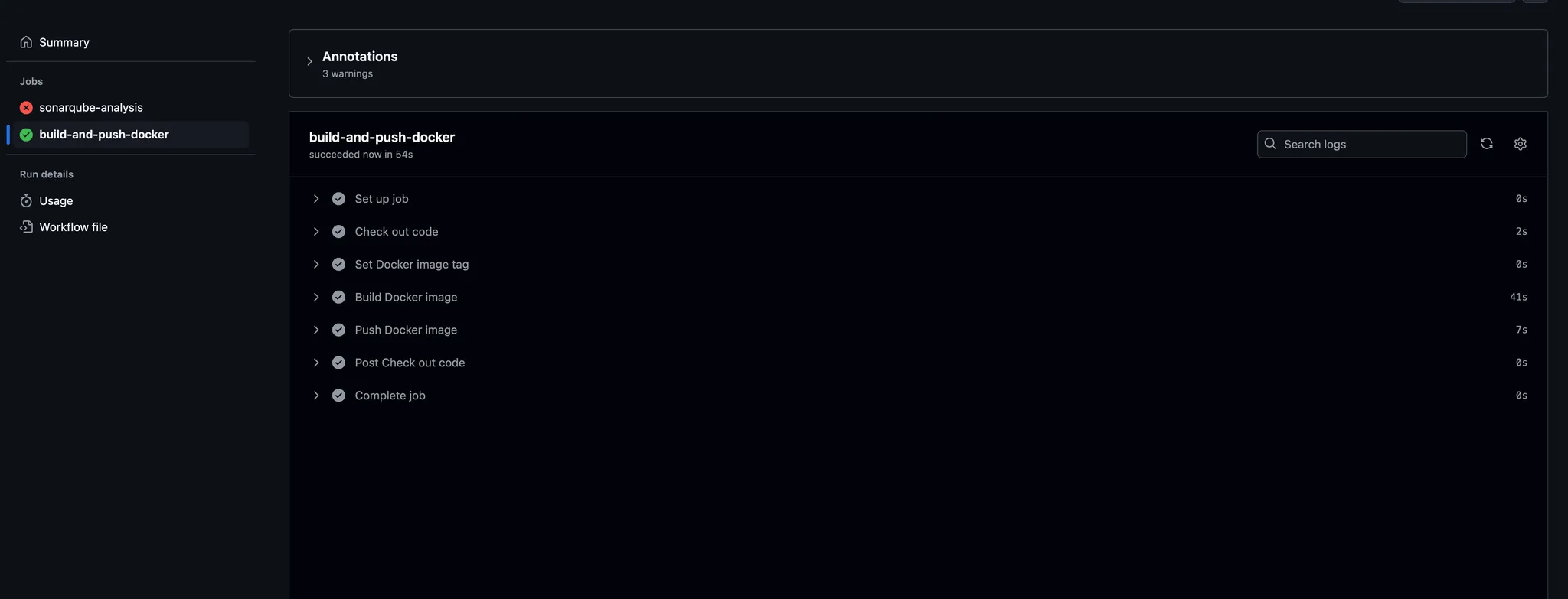 - job : sonarqube-analysis → build-and-push-docker 가 순차적으로 수행된다.