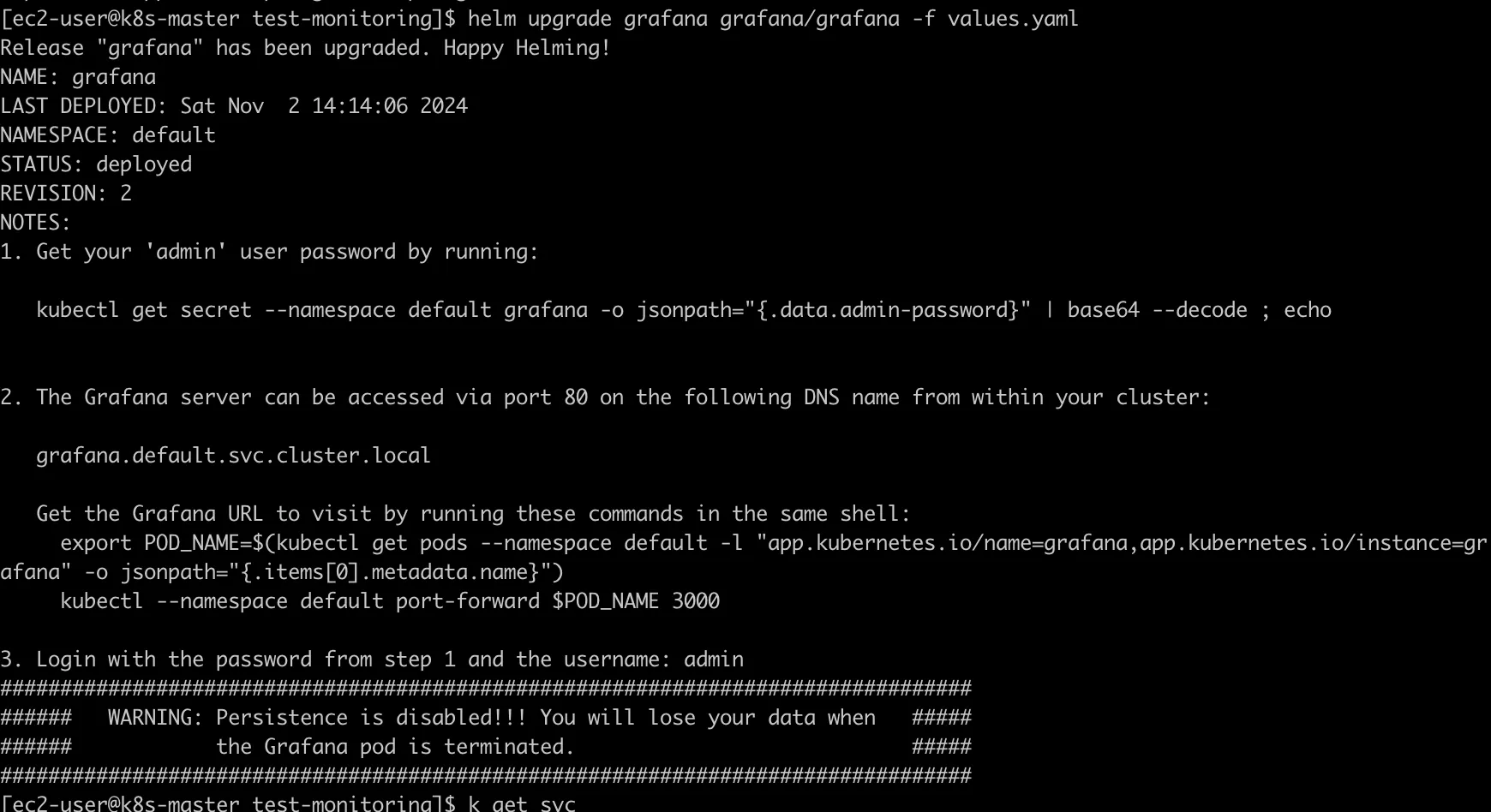 helm install grafana grafana/grafana -f values.yaml -n monitoring