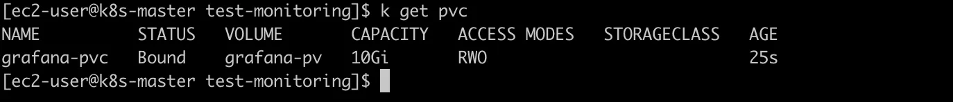 먼저, grafana의 Pod가 내려가도 지속적으로 사용할 수 있도록 pv와 pvc를 생성한다.